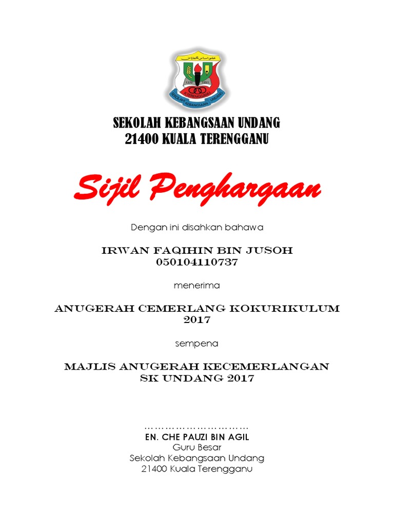 Contoh Sijil Untuk Anugerah Kecemerlangan By Ra_Katherine882 05 Jun, 2022 Post a Comment Sijil Anugerah Sijil Anugerah Pelajar Terbaik Majlis Graduasi Contoh Sijil Penghargaan Dan Boleh Diedit Certificate Design Template Powerpoint Design Templates Certificate Design Sijil Anugerah Contoh Sijil Penghargaan Pdf Share No comments for "Contoh Sijil Untuk Anugerah Kecemerlangan"